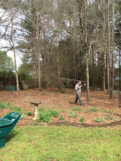We started and ended March with a burn. We managed to cut a couple trees in between our rainy weekends. We are trying to minimize the amount of pine needles that fall into the pool all summer, so the trees must come down. The process is exhausting and takes all day, but it's very much needed so here we go...